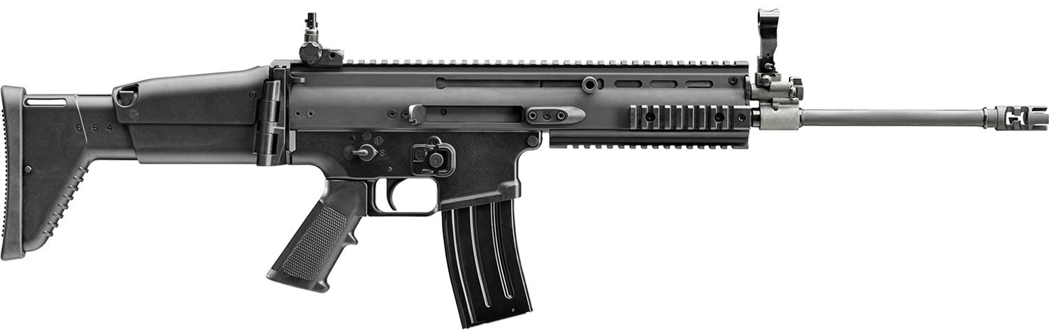 The fast-handling and quick-shooting FN SCAR 16S is upgraded with Non-Reciprocating Charging Handles. The new, dual charging handles enable any shooting position, grip style or optic choice, ensuring any braced or barrier-contact position shoots flawlessly. A rugged, monolithic upper receiver with MIL-STD-1913 rail provides space for rail-mounted accessories, and a folding buttstock fits any shooter with adjustable length of pull and cheek rest height. The FN SCAR 16S in 5.56x45mm is the benchmark for reliability and versatility from a light recoiling, piston-driven platform.